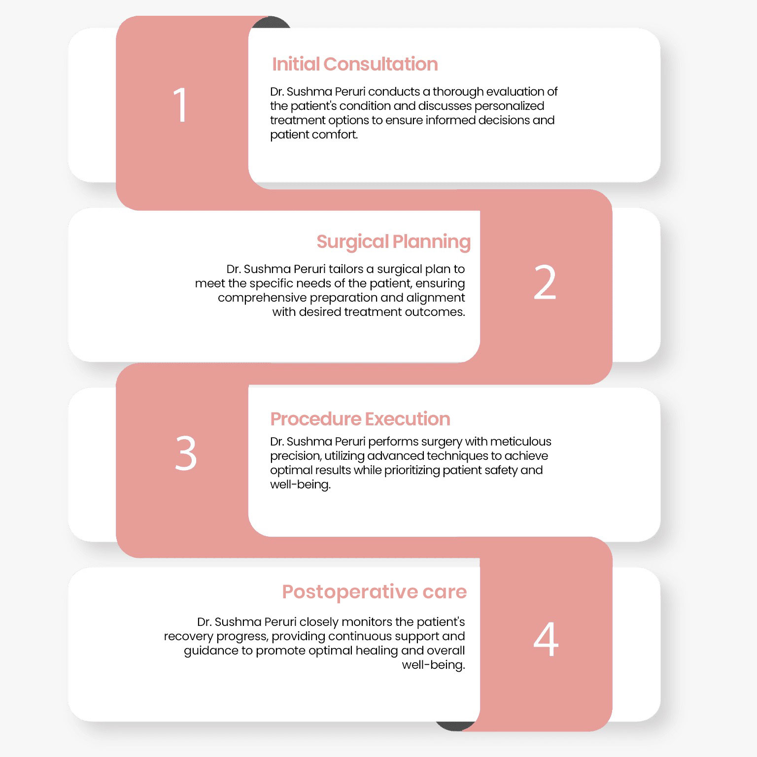 As a patient of Dr. Sushma Peruri, a leading general surgeon in Hyderabad, I had an outstanding experience. Her friendly, professional staff and caring approach ensured my comfort throughout the entire surgical process.