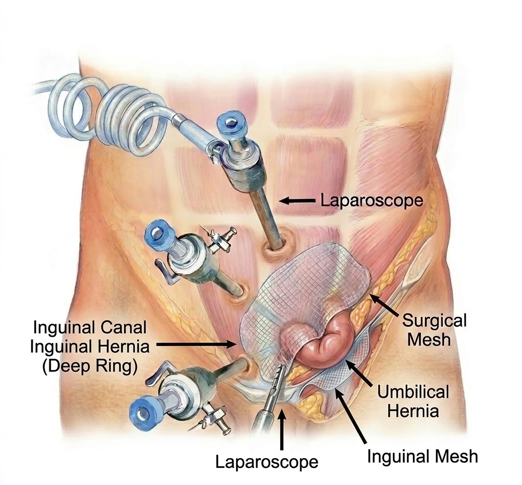 Get safe and effective hernia treatment with advanced laparoscopic (keyhole) surgery performed